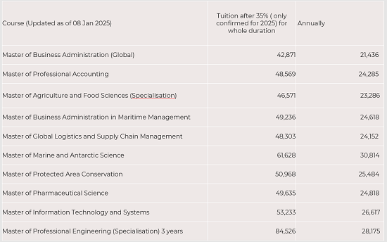 Bậc Thạc sĩ: Học phí chỉ còn từ 21436 tới 30814 AUD/ năm