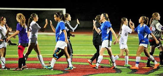 Nữ sinh Alta Loma (áo xanh) trên sân bóng